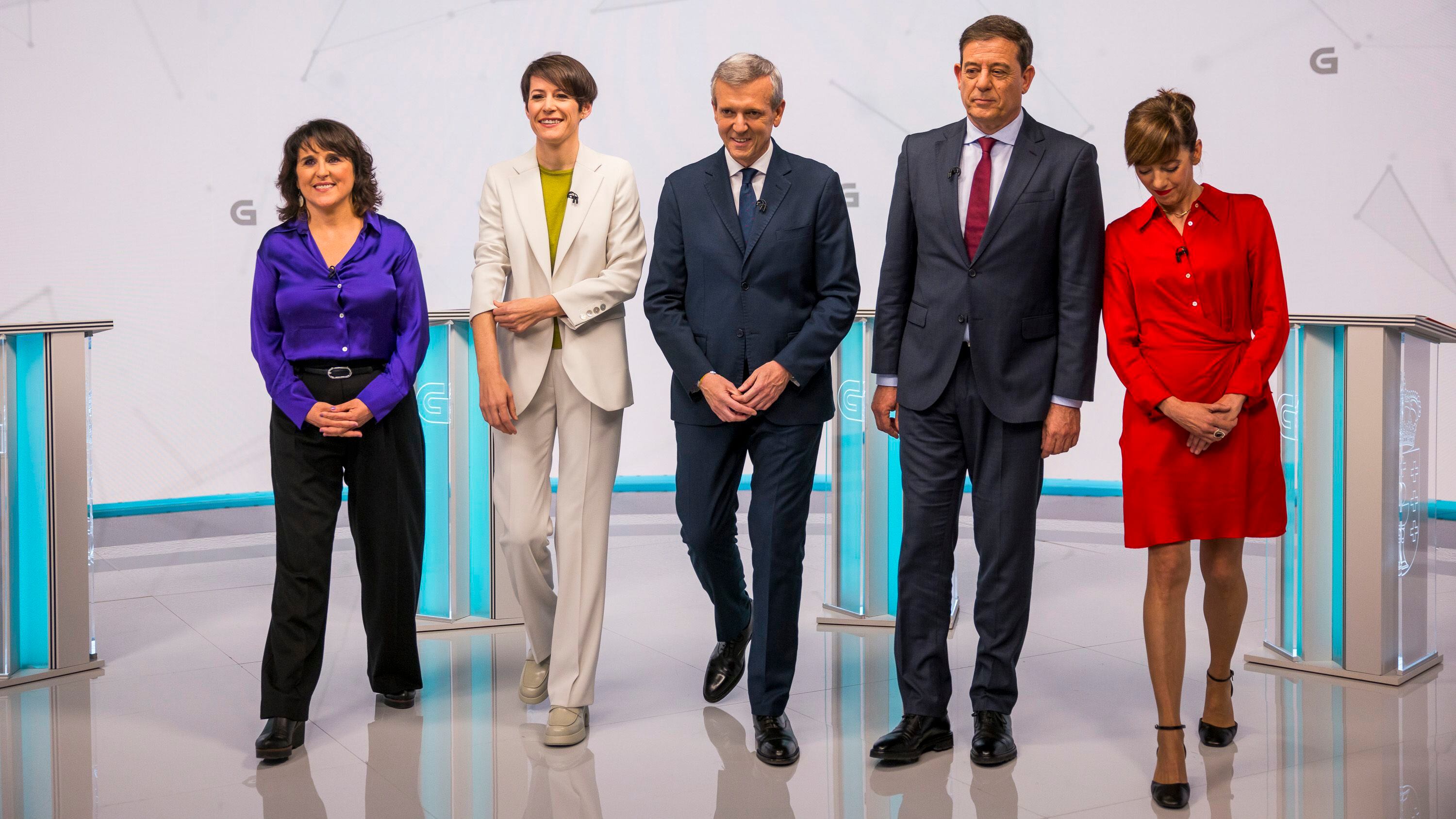 A las 21.30 de este lunes ha comenzado en la TVG, la televisión pública de Galicia, el único debate electoral al que asiste el presidente de la Xunta y candidato del PP el 18 de febrero, Alfonso Rueda. Es un debate a cinco, ya que también están la líder del BNG, Ana Pontón; el aspirante socialista a la Xunta, José Ramón Gómez Besteiro; la candidata de Sumar, Marta Lois; y la de Podemos, Isabel Faraldo.